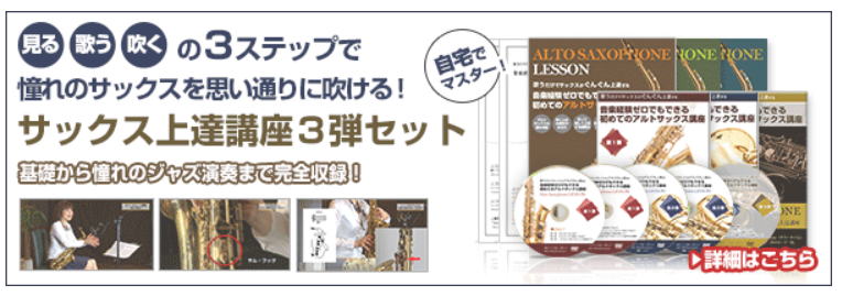 「初心者向けアルトサックス教本&DVD 3弾セット」について