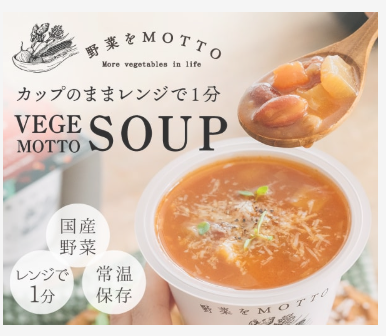 | 商品名 | 野菜をMOTTO カップのままレンジで1分 簡単贅沢な野菜スープ |